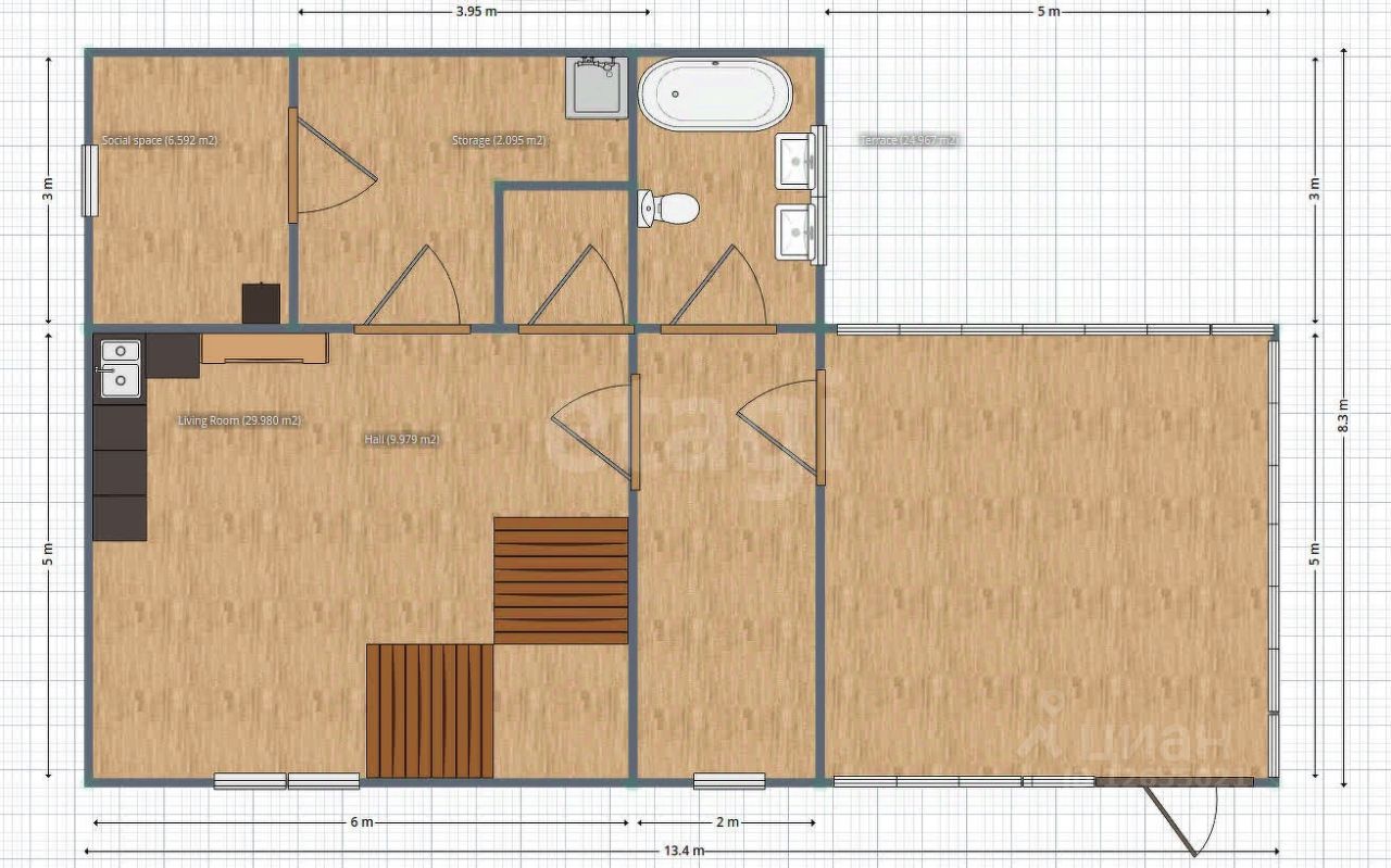 Дом 90 м² · 8.7 соток · 1 этаж