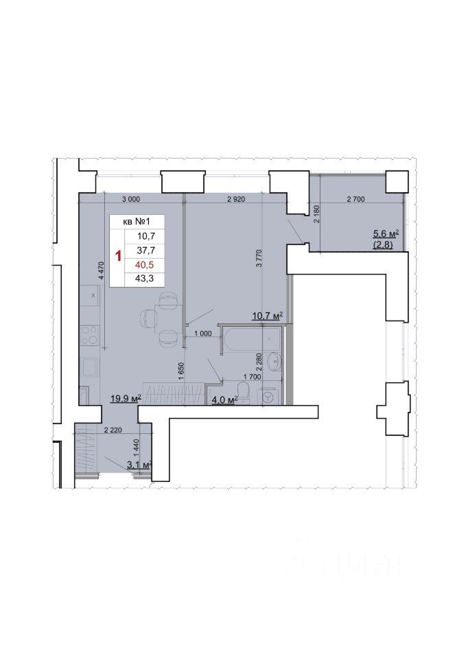 43 м² · Этаж 1 из 9