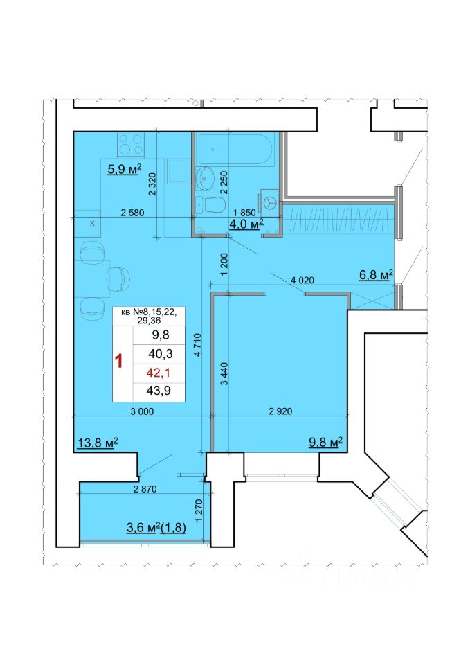 42 м² · Этаж 8 из 9