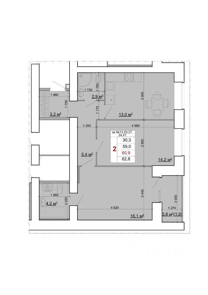 57 м² · Этаж 5 из 9