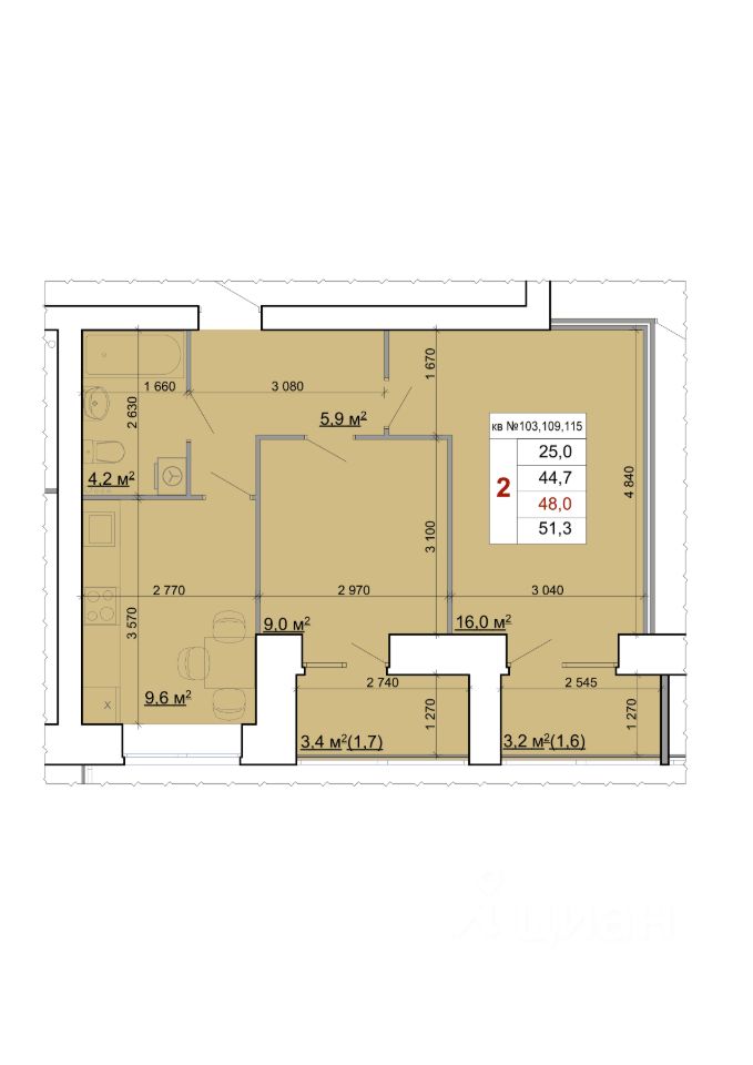 57 м² · Этаж 6 из 9
