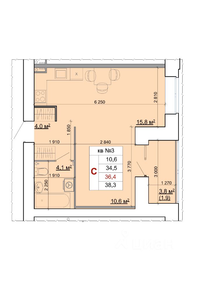39 м² · Этаж 3 из 9