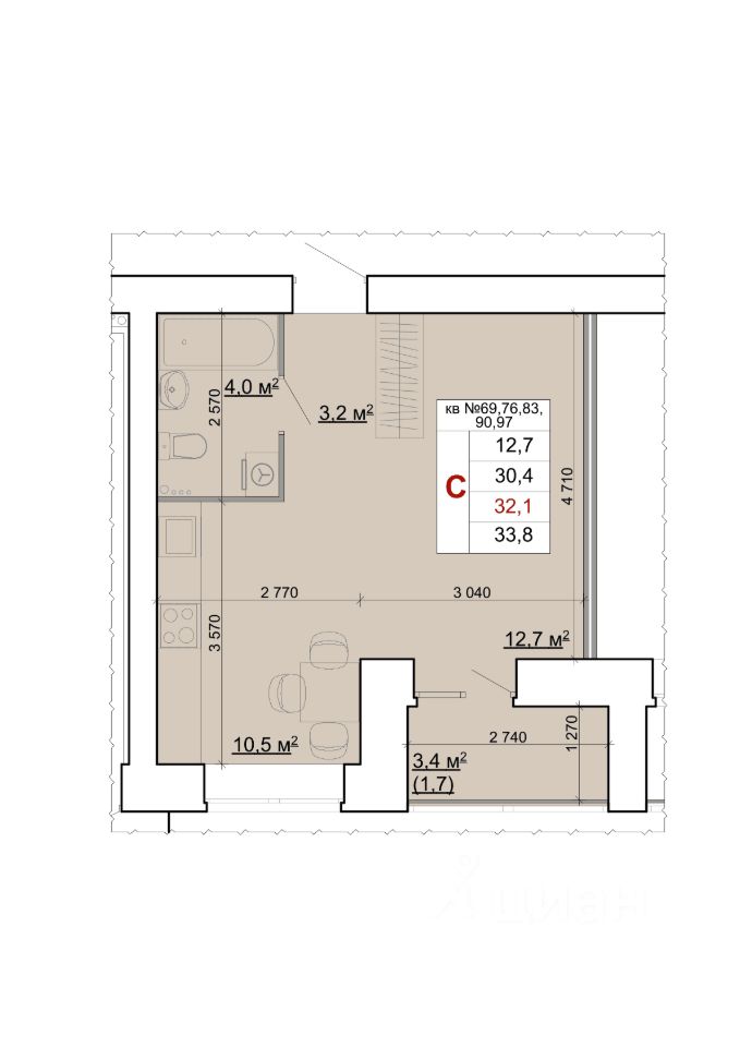 33 м² · Этаж 4 из 9