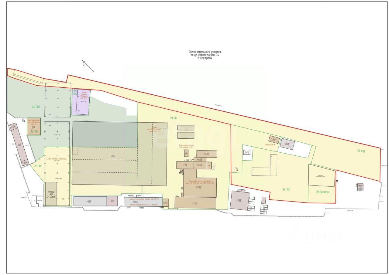 Земельный участок 25 соток в собственности. На участке полуразрушенный склад. Коммуникации: электричество 60 кВт. Получен градплан. Техусловия на газ, водопровод, канализацию. Участок расположен на территории базы, заезд от путепровода со стороны Кинешемского шоссе через проходную ЦВК. Возможен Торг.