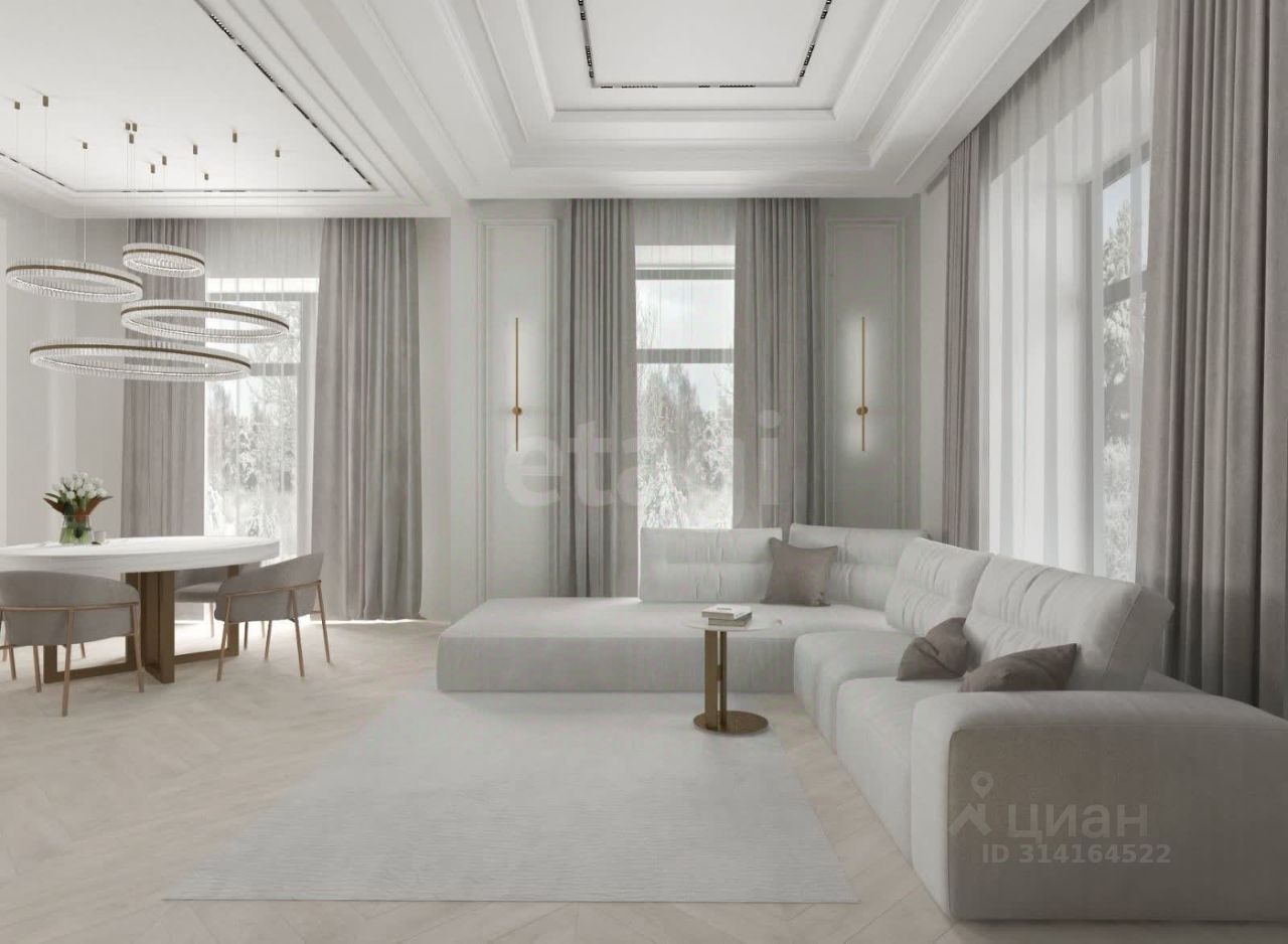 Особенности: • Энергия света и воздуха: Потолки на первом и втором этаже высотой 4 метра, огромные окна в пол (70 мм 5 камер, двухсторонняя ламинация), что создает ощущение простора и наполняет дом естественным светом. • Теплоизоляция: Дом очень теплый благодаря качественным материалам и продуманной конструкции
