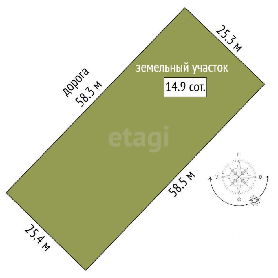 Общая площадь участка 15 соток.