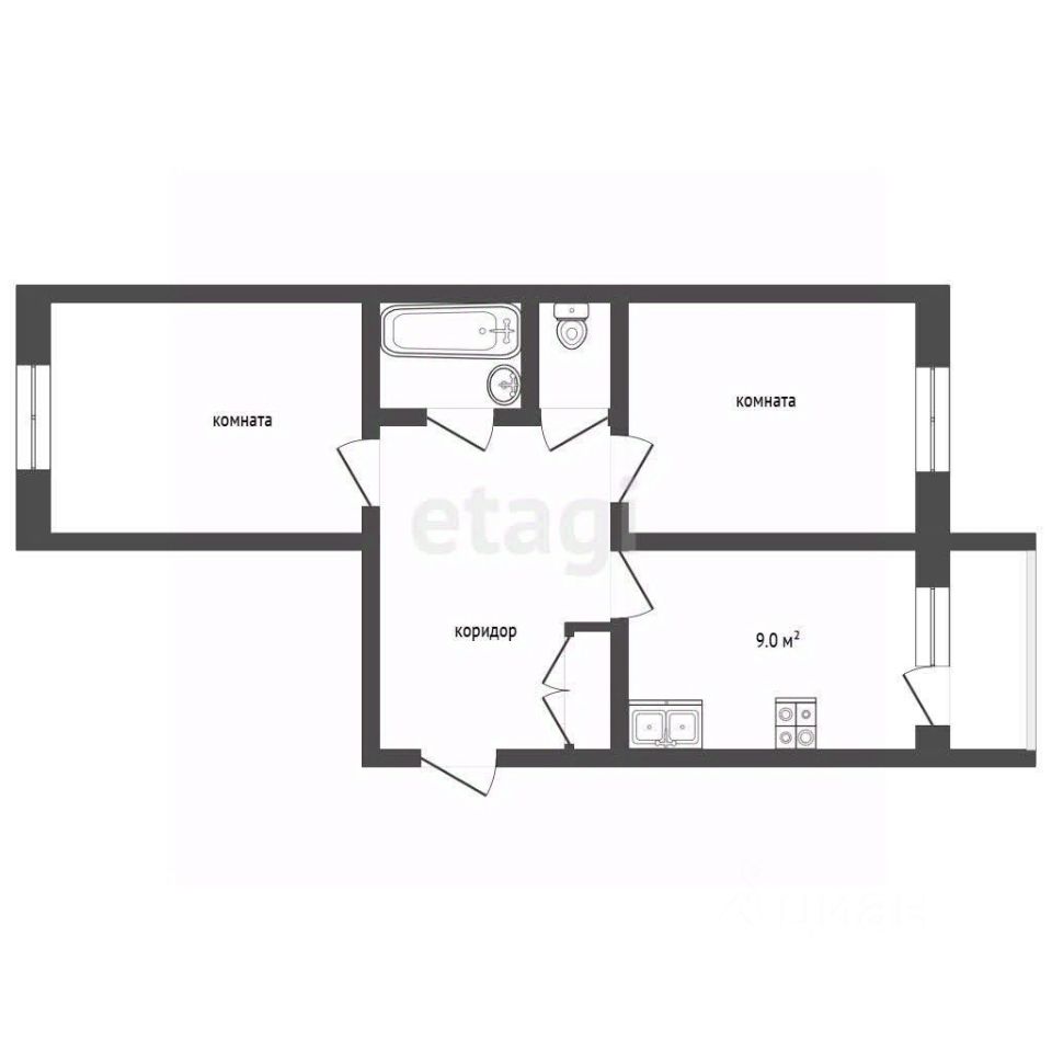Комнаты на разные стороны, большой коридор, просторная кухня с выходом на балкон. Санузел раздельный.