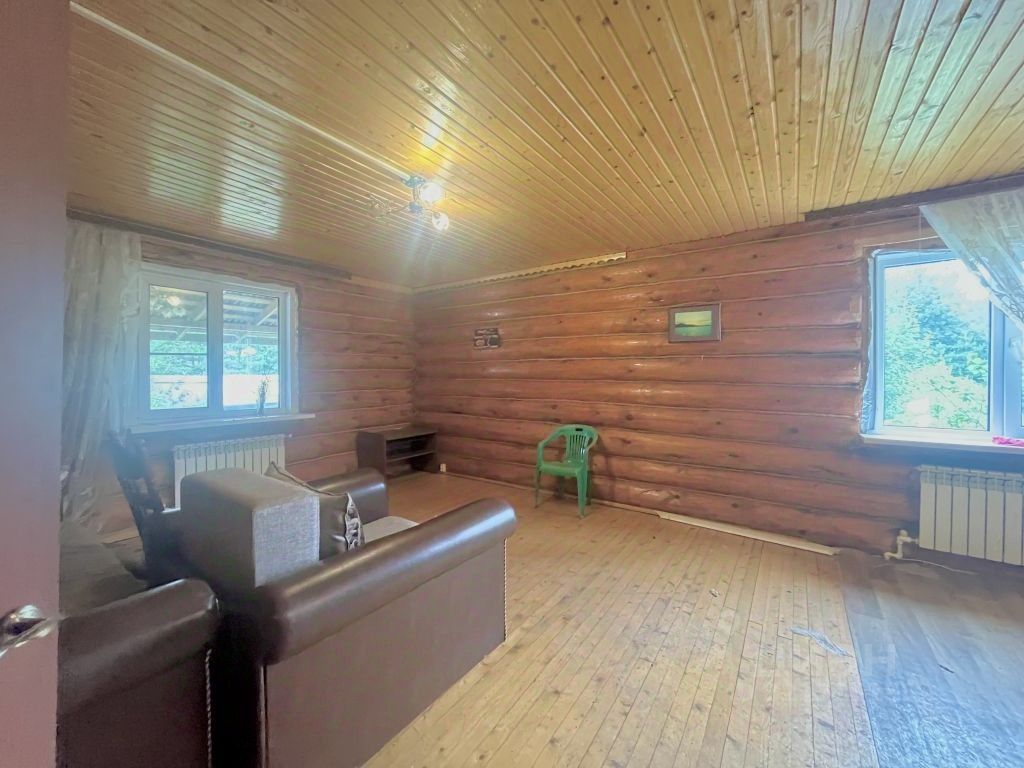 На продаже прекрасный ДОМ с прекрасной верандой из рубленного бревна. Фундамент из бетонных блоков, крыша - ондулин. В доме, общей площадью 113 м2 два этажа, имеется подвальное помещение (расположены коммуникации). На первом этаже расположена большая кухня-гостиная площадью 35 м2, совмещенный санузел, прихожая с лестницей на второй этаж. На втором этаже две спальни и гостиная. Коммуникации центральные - газ, водопровод, электричество, канализация - септик. АВТОНОМНОЕ отопление это постоянное наличие горячей воды и регулирование тепла в доме (вся система отопления заменена на новую). Земельный участок 15 соток -по всему периметру установлен забор из профнастила.На территории имеется баня и теплица. Участок облагорожен плодовыми деревьями, сортовыми цветами.