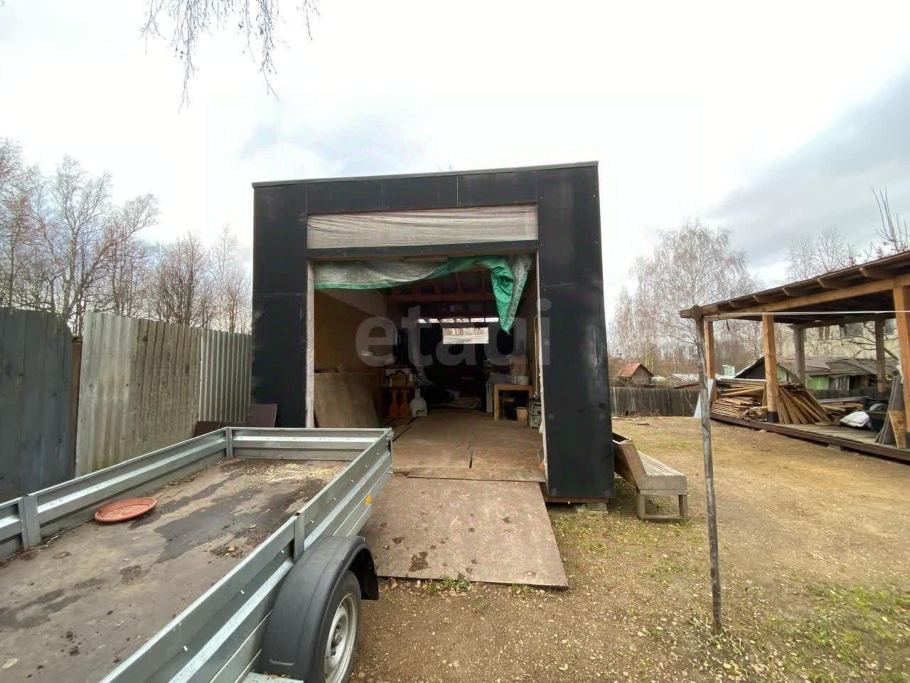 Прилегающая территория благоустроена: выполнено бетонирование, организован двухуровневый ландшафт с огородом.