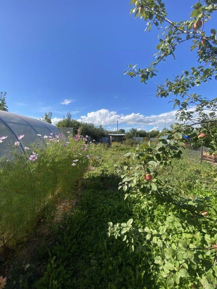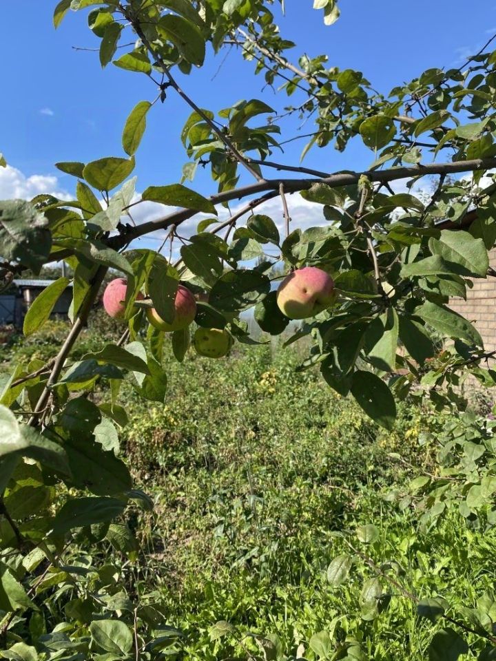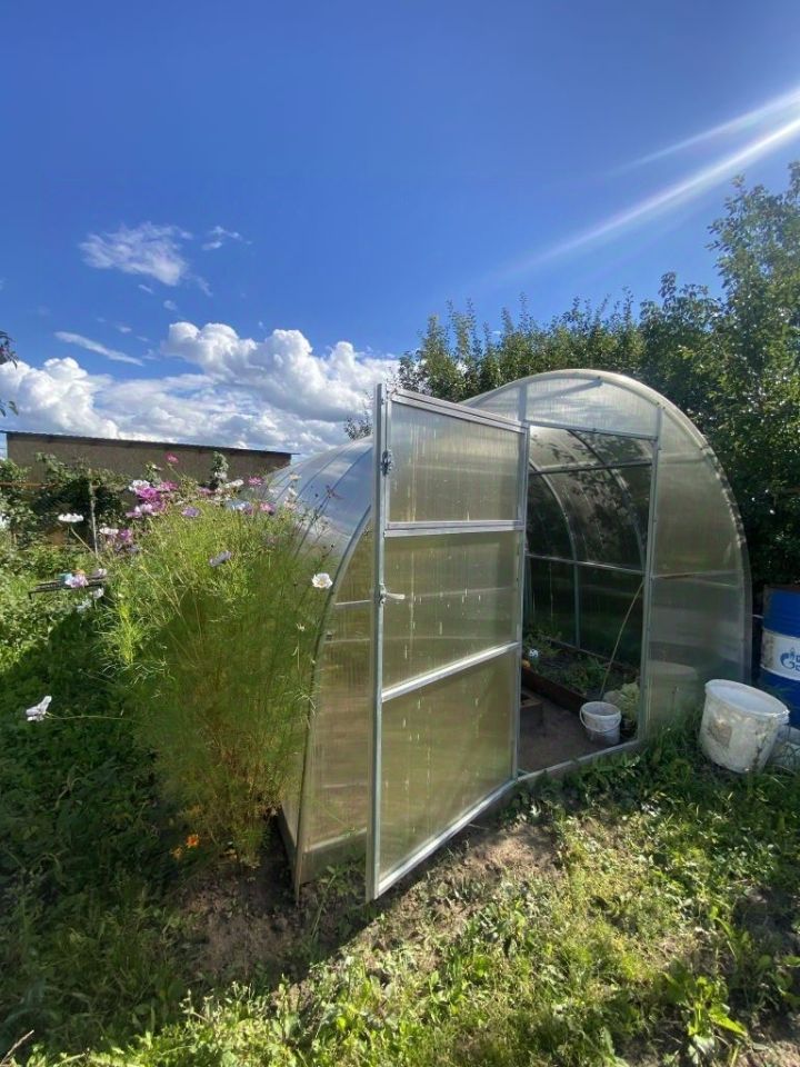 На участке: яблоня, слива, вишня, смородина, теплица. Сделана площадка для бассейна.