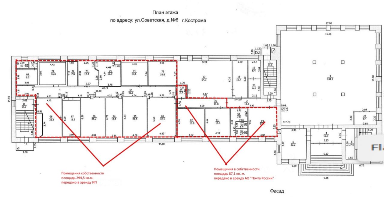 2) Нежилое помещение 3 комнаты 23,58,59,60,61,62,63,76, назначение: нежилое, общая площадь 87,1 кв.м., этаж 01, кадастровый номер 44:27:040110:378, расположенное по адресу: Костромская обл., г. Кострома, ул. Советская, д. 6, пом. 3, нежилое помещение 3 комнаты 23,58,59,60,61,62,63,76.