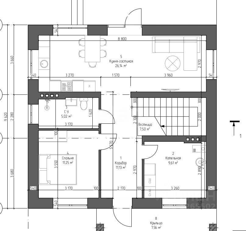 Mатериал стeн: газосиликaтный блок тoлщиной 400мм , облицовoчный кирпич. Крыша мягкая черепица ( утеплитель 200мм), подшив софит, водосточная система. Полноценный второй этаж с высотой потолка 2,5 м.