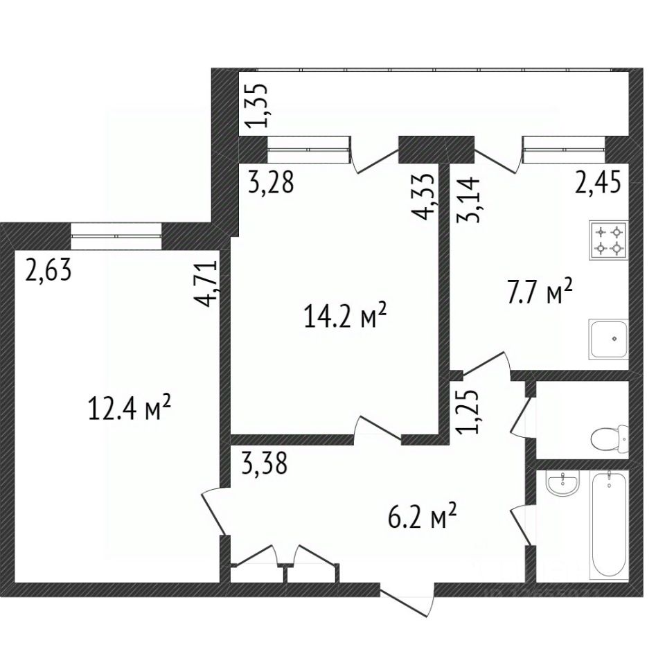 В квартире есть всё для комфортного проживания: - Диван - Кресло - Две односпальных кровати - Кухонный гарнитур - Обеденный стол, табуреты - Газовая плита - Телевизор - Шкафы для одежды - Холодильник - Стиральная машина