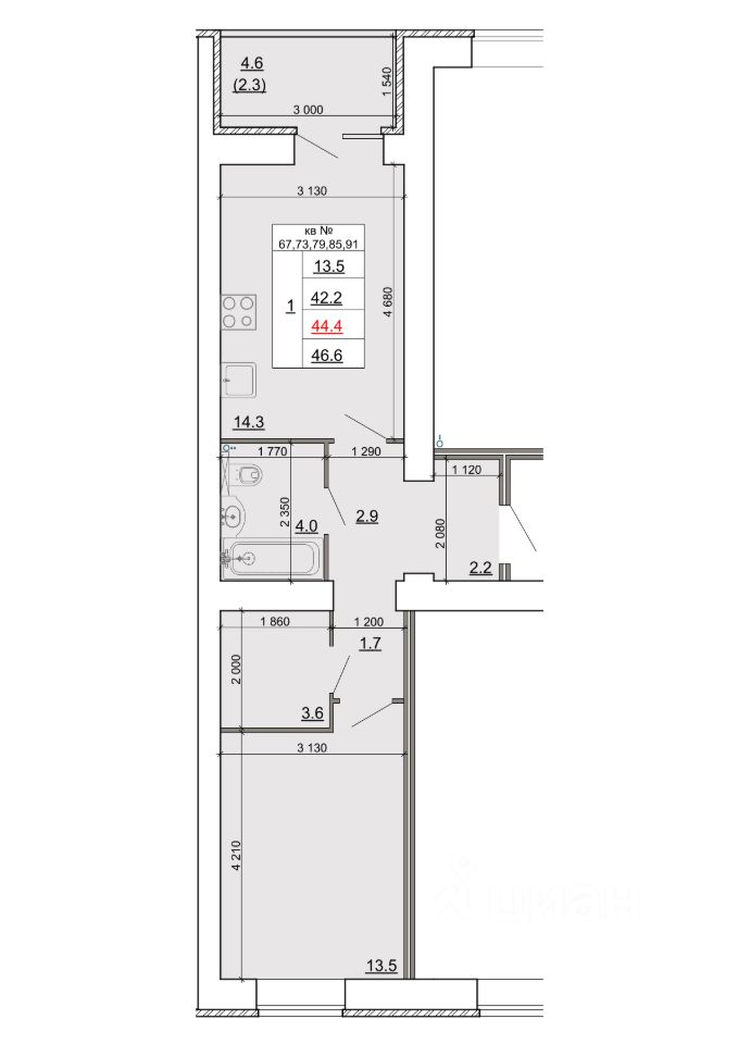 Продаётся 1-комнатная квартира в строящемся доме (Дом 2), срок сдачи: IV-кв. 2027, общей площадью 44.4 кв.м., на 2 этаже. Новый жилой комплекс ''Знак'' от застройщика ГК ''МастерСтрой'' расположен по адресу: Россия, Кострома, бульвар Маршала Василевского