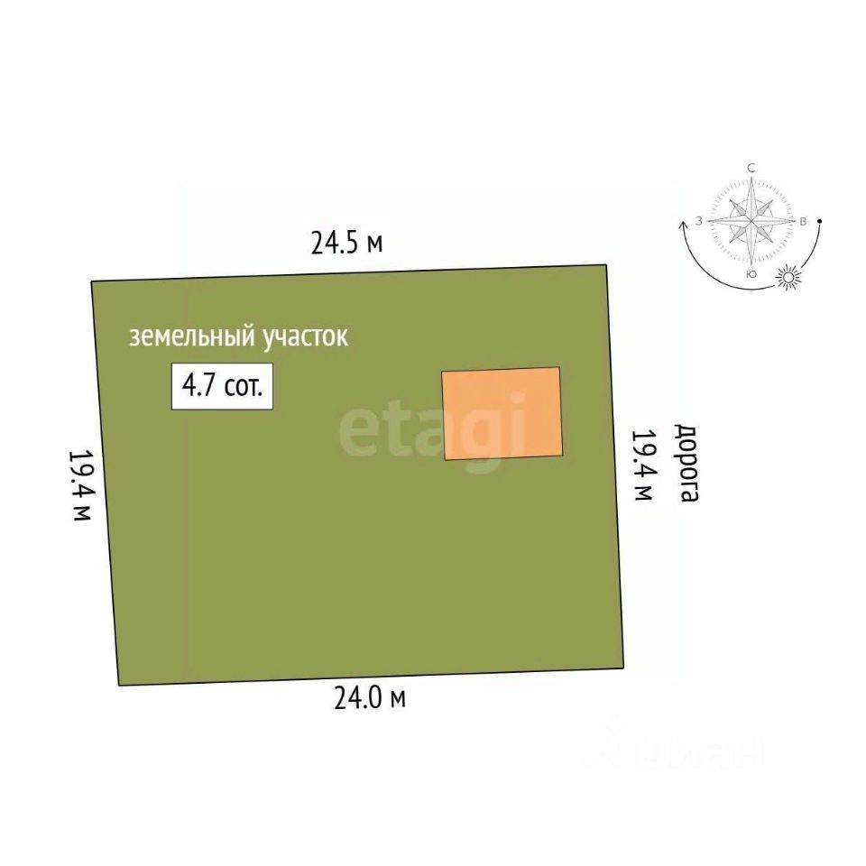 Площадь участка 466 кв.м ( 4,7 сотки), межевание проведено, границы установлены, участок частично обработан. Плодовые насаждения: яблoни, вишня ,cмopодина, грушa и cлива .
