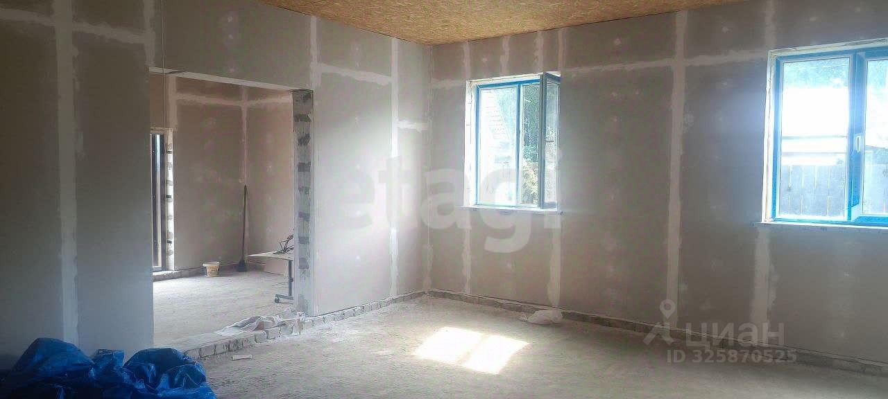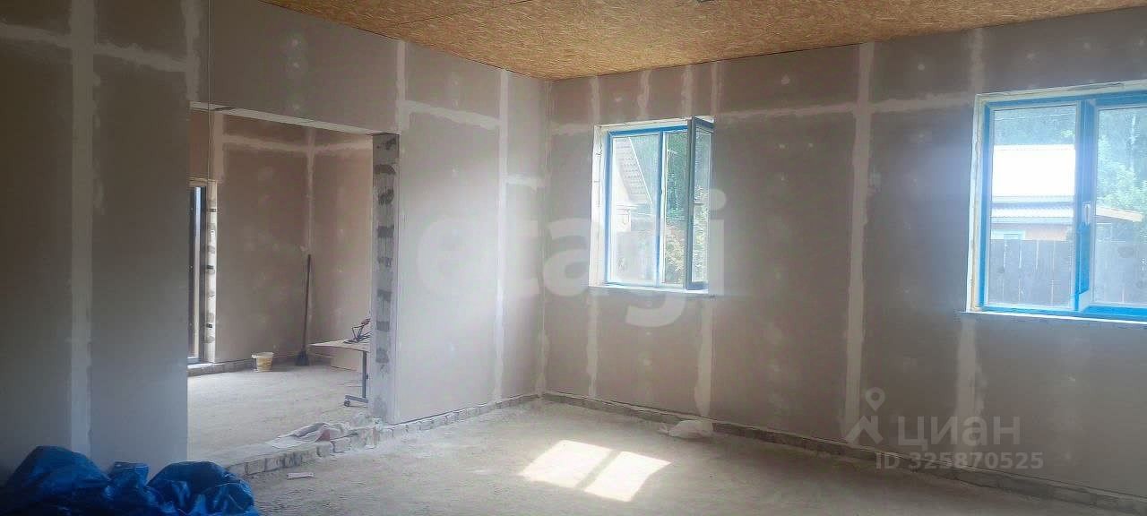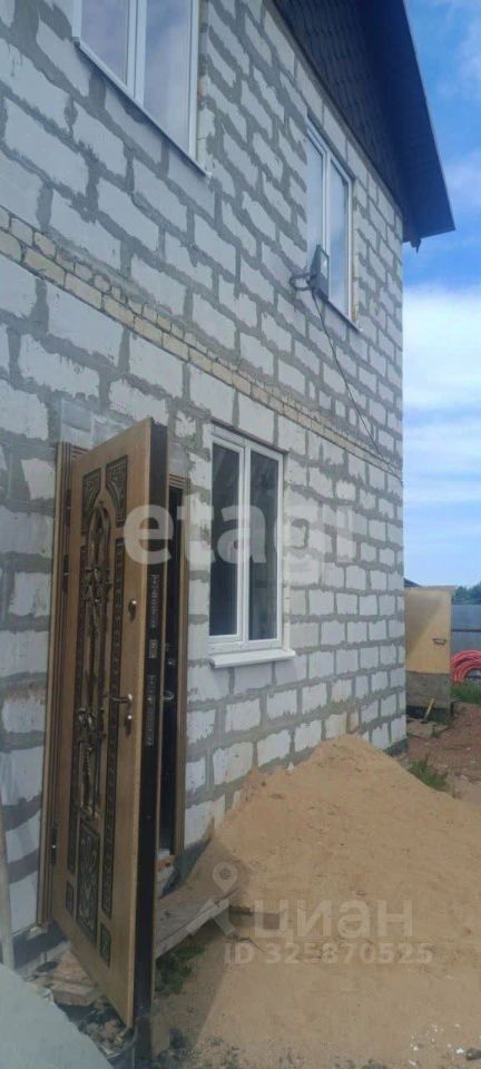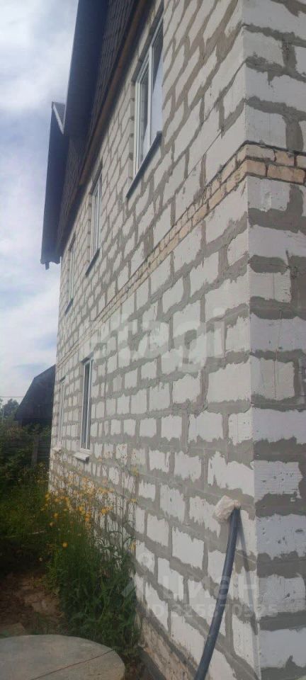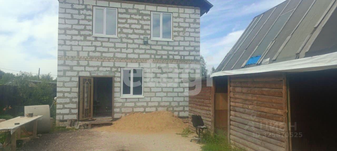 На участке находится дом, баня и хозяйственные постройки. Дом находится на стадии отделки — это двухэтажное здание площадью 112 кв. м., у которого уже готовы стены, крыша и перекрытия и напольное покрытие второго этажа. Залиты полы на первом этаже. Всё подготовлено для тёплых полов. Чястичная предчистовая отделка. Окна и двери установлены. Дом введён в эксплуатацию. Есть колодец с водой. Электричество заведено в дом.