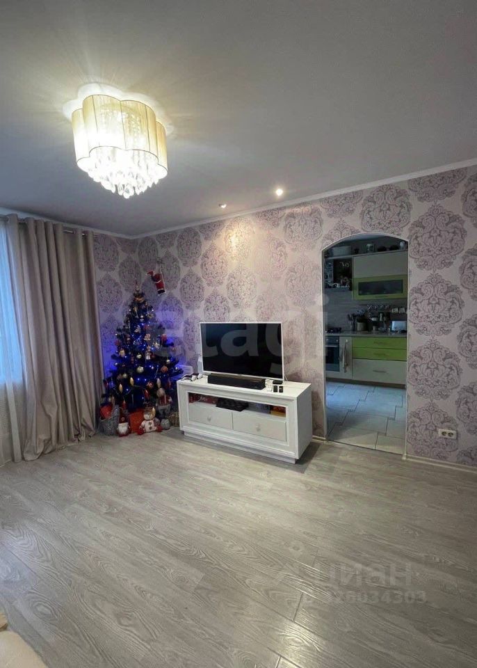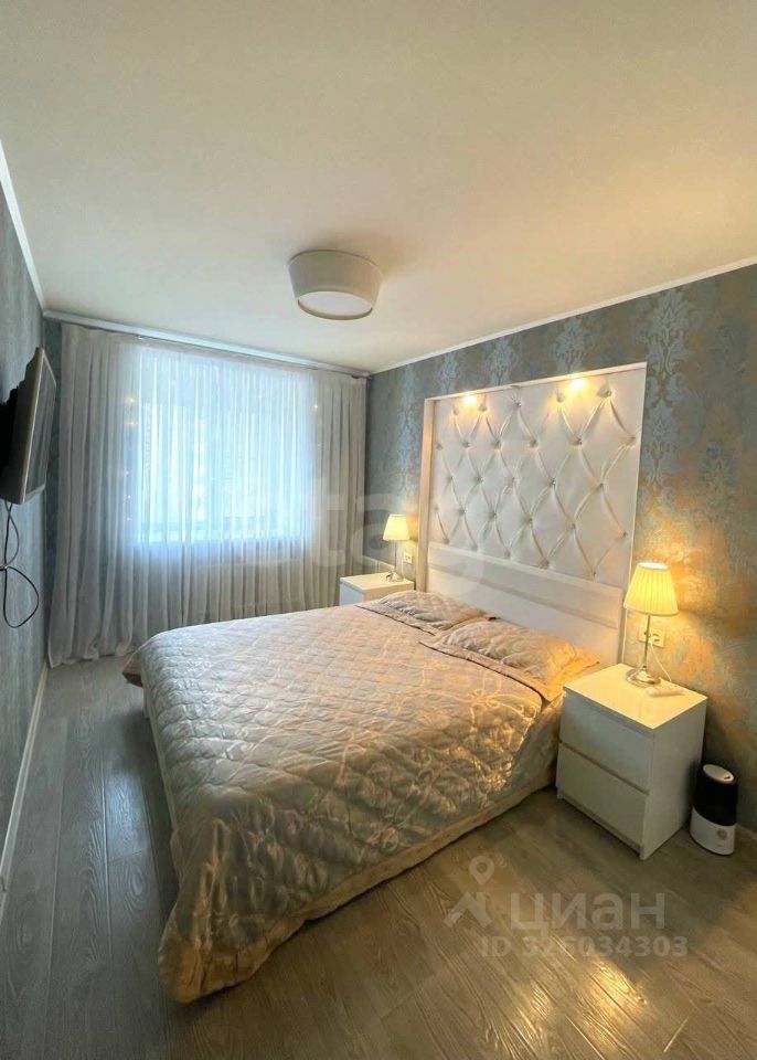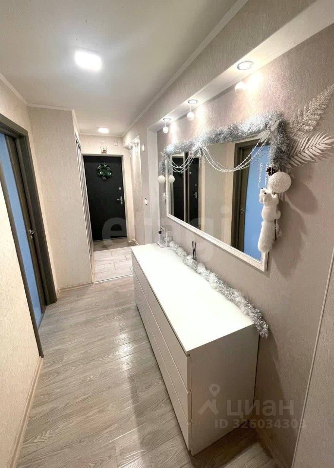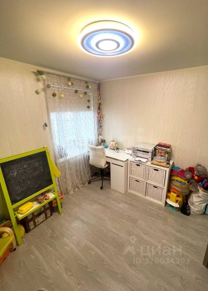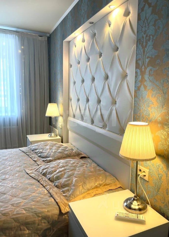 Уютная детская комната (8 кв, стены утеплены). Просторная спальная комната со встроенным гардеробом и декоративным изголовьем в технике каретной стяжки. Гостиная и кухня совмещены. Перепланировка узаконена. Большая застекленная лоджия с двумя шкафами для хранения .