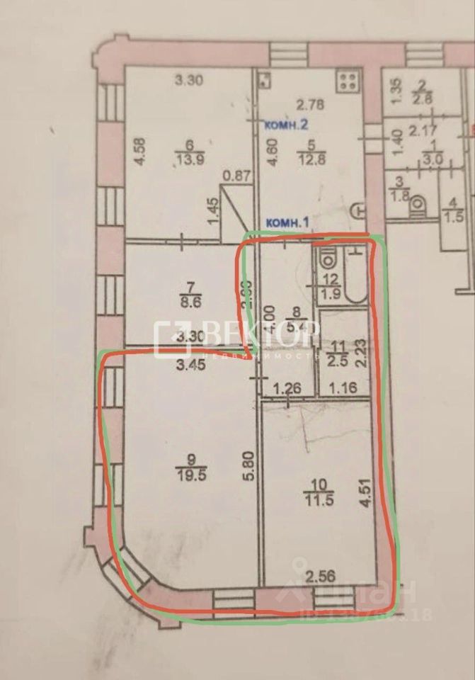 Продается часть квартиры в статусе комнаты 38,7м2 состоящая из 2х комнат 19,5 и 11,5 м2 Имеется свой санузел. Можно организовать кухню