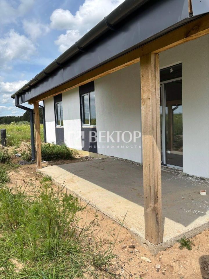 Дом, общей площадью 124 м2, выполненный из газобетонных блоков плотностью D500, толщиной 375 мм, с отделкой фактурной штукатуркой. Фундамент - монолитная жб плита 30 см. Внутренние несущие стены толщиной 300 мм, перегородки - 100 мм. Перекрытия потолка - доска 45*195, с утеплением минеральной ватой толщиной 200 мм. Крыша гибкая черепица, двускатная по деревянным стропилам. Водосточная система и подшивы кровли ПВХ. Окна ПВХ 72 профиль профиль, 2-камерный стеклопакет. Входная дверь - техническая.