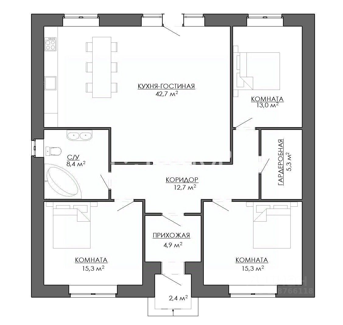 Готовый ДОМ в 3 минутах от города, Д. СТРЕЛЬНИКОВО! - просторная кухня-гостиная с выходом во двор - 3 спальни - гардеробная - санузел - прихожая - высота потолков 2,9 м - площадь - 120 м2 - площадь участка - 7 соток - газовый котел, батарея