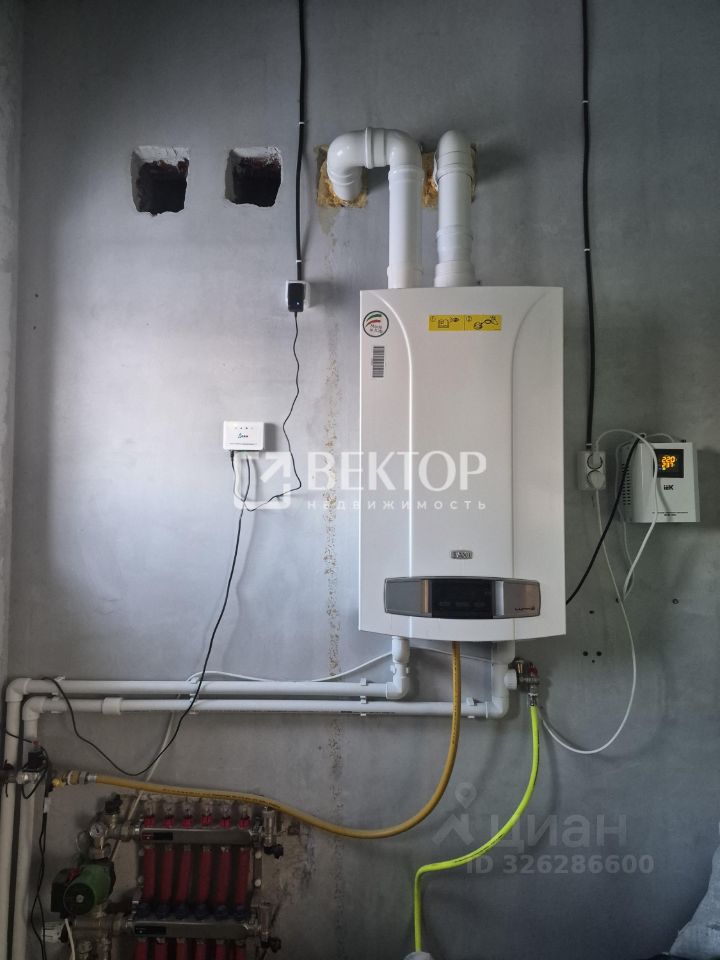 В доме смонтирована система отопления, по всей площади тёплый пол ''Шведская плита'', установлен газовый котёл BAXI LUNA-3 240 I. Выполнена полусухая стяжка пола, оштукатурены стены, проведено электричество. Утеплённая кровля со сливами и водоотводами, рубероид.