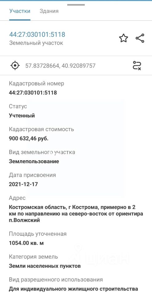 продам земельный участок, Кострома1 000 000 ₽