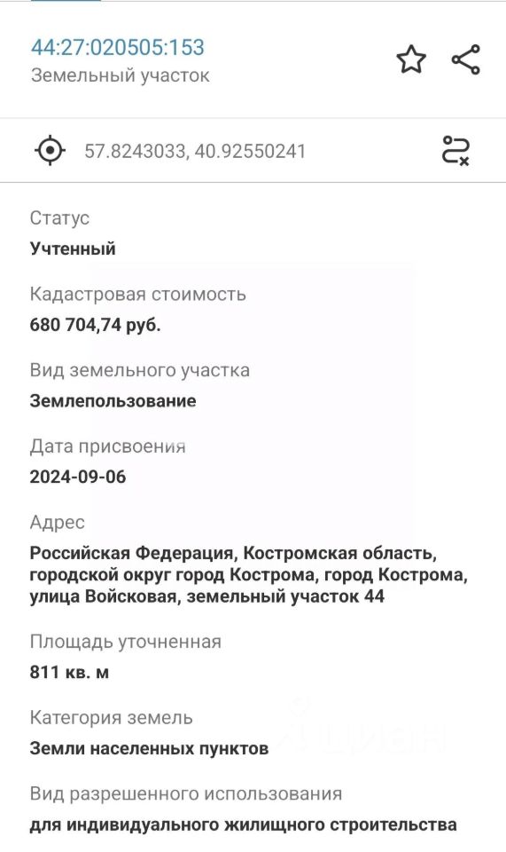 продам земельный участок, Кострома1 100 000 ₽