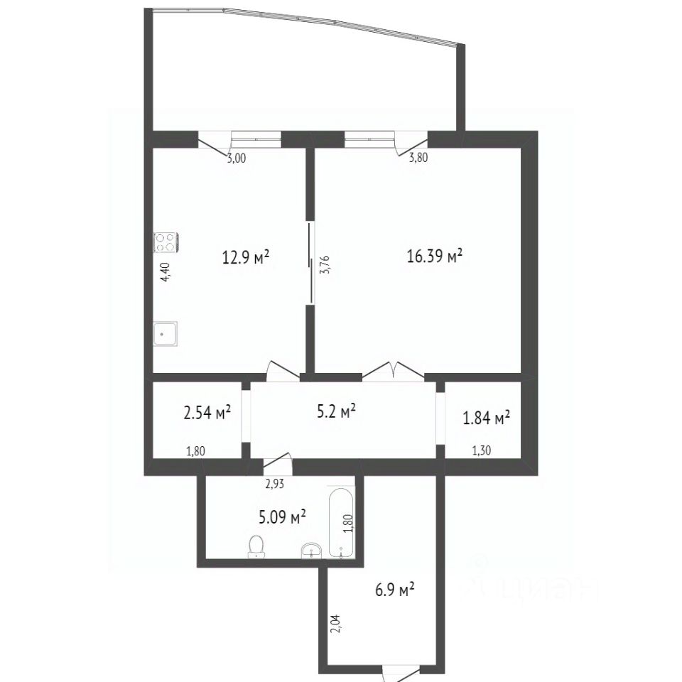 Кухонный гарнитур Обеденная зона Диван Кровать Микроволновая печь Холодильник Стиральная машина Газовый котёл Места хранения вещей