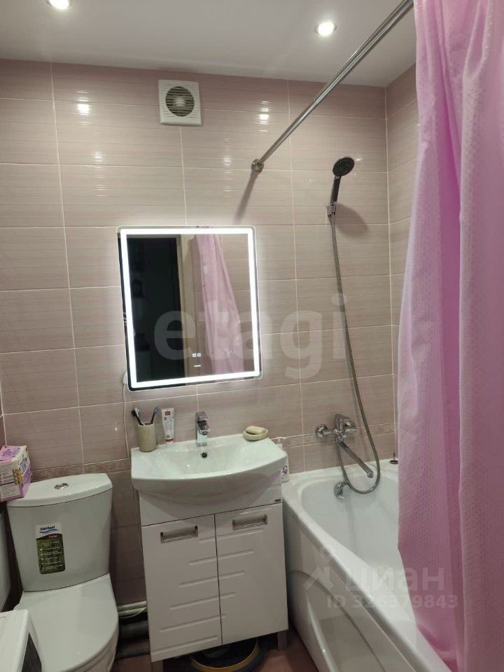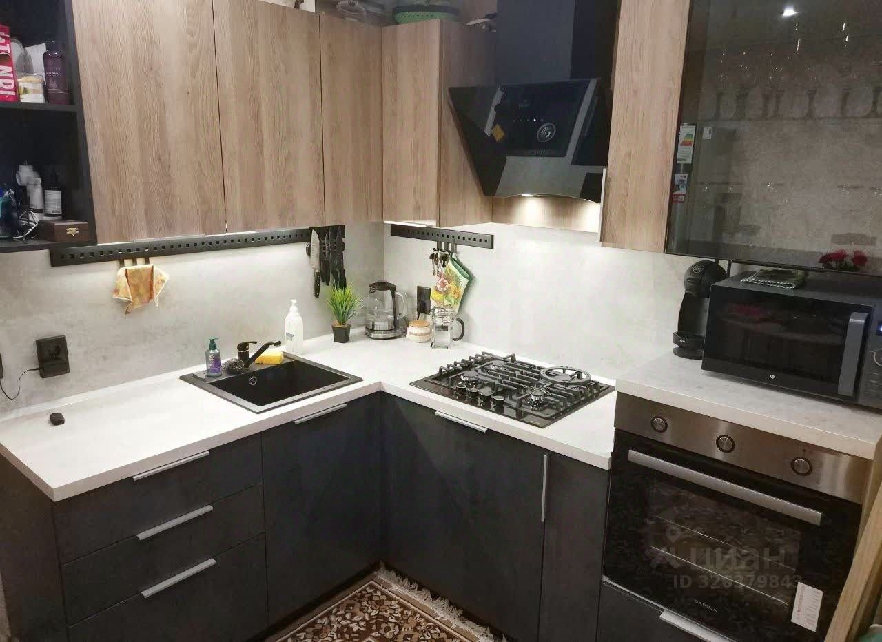В квартире выполнен ремонт. Делалось всё качественно, для себя. Санузел выполнен в кафеле. На полу ламинат. Современный кухонный гарнитур со встроенной техникой остается. Выход на лоджию из кухни.