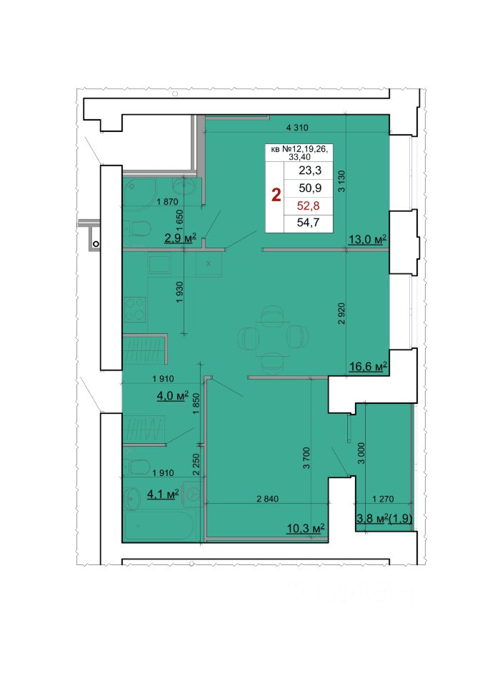 Общая площадь54,6 м2
