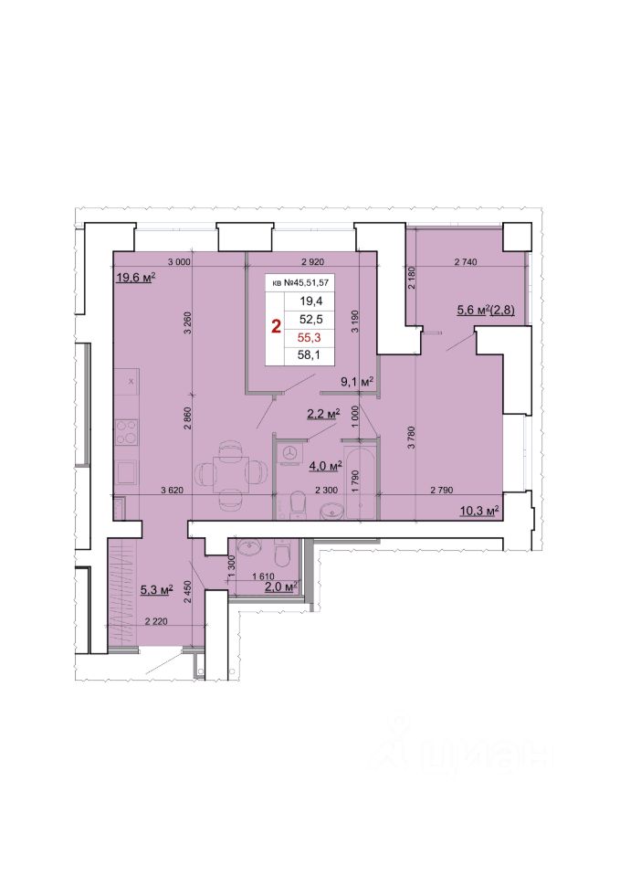 Общая площадь58,1 м2