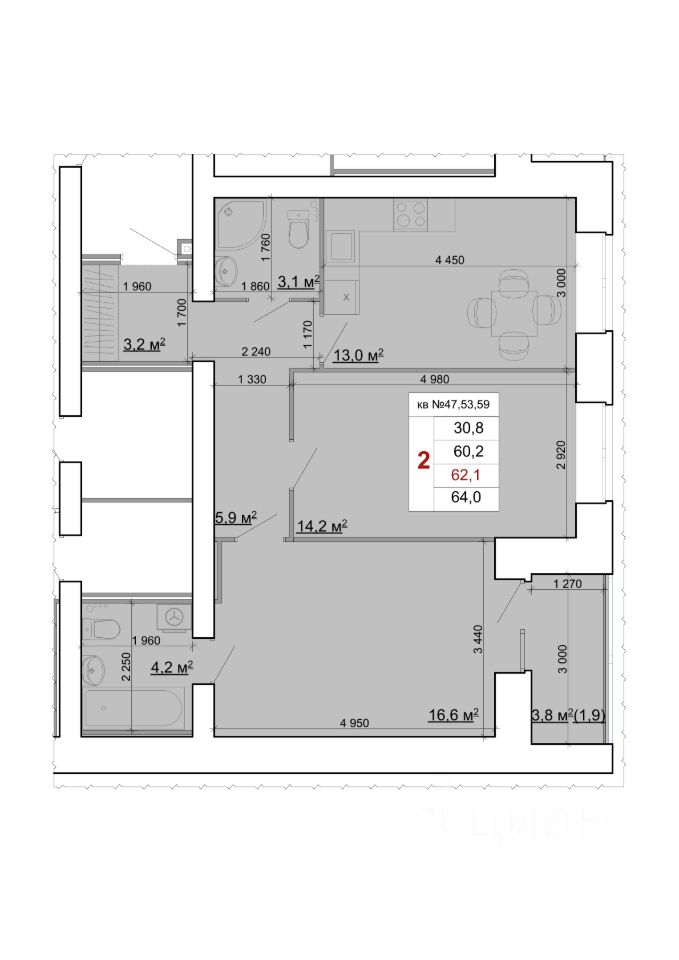 Общая площадь64 м2