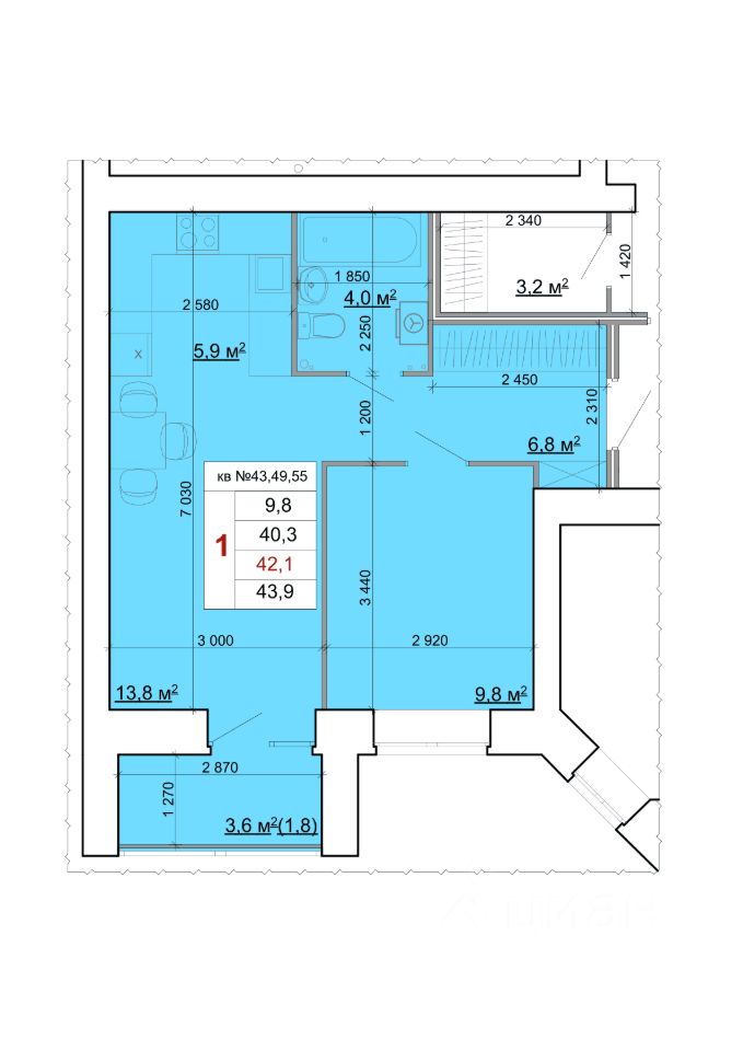 Общая площадь43,9 м2